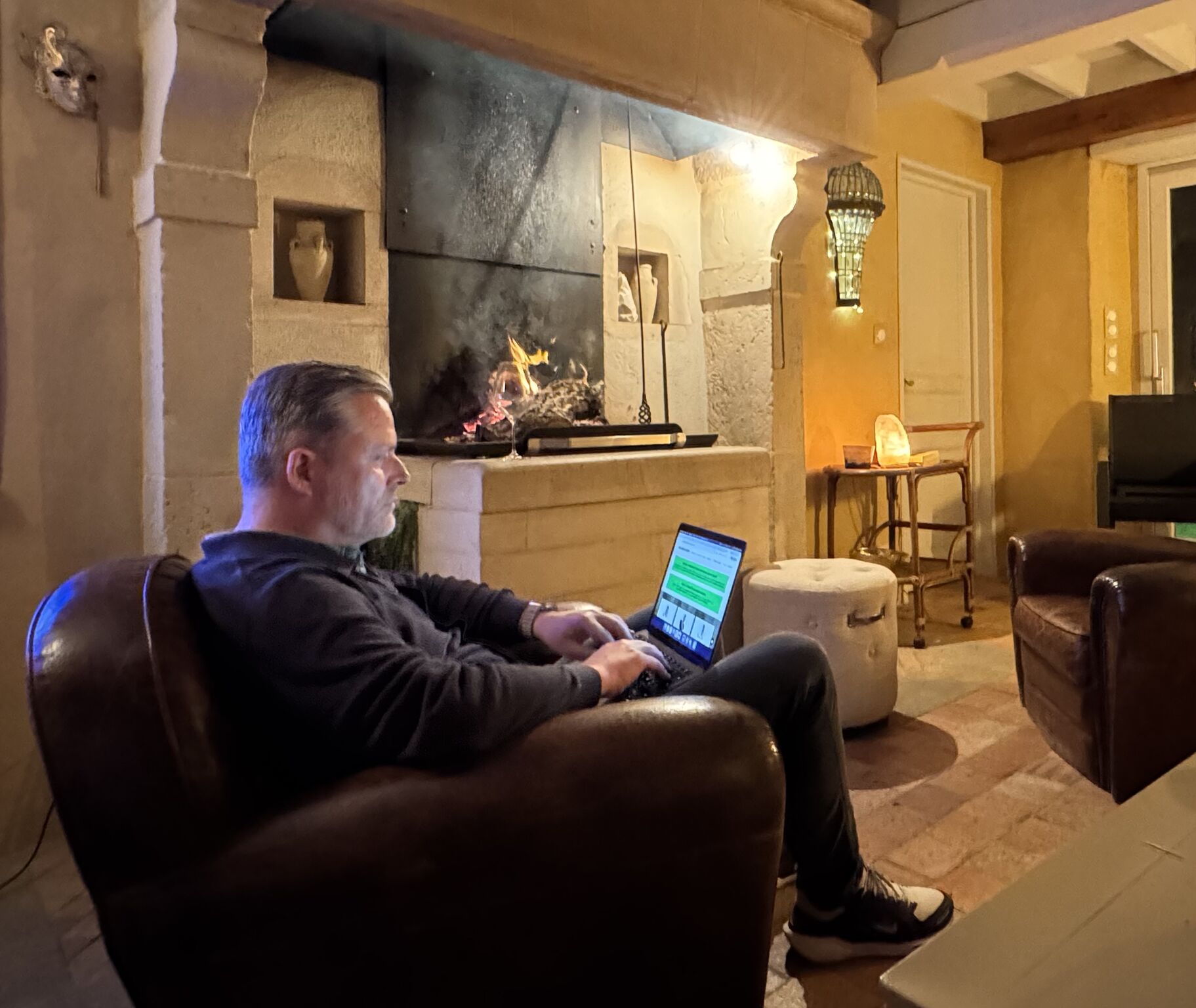 Et pour moi, rien de mieux qu’un cadre calme comme celui-ci : une maison au milieu de la nature, un feu, un verre de vin, un ordi et le silence... 🔥🍷